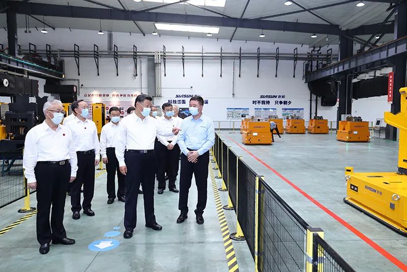 習(xí)近平17日在沈陽市考察調(diào)研。當(dāng)天下午,他來到沈陽新松機(jī)器人自動化股份有限公司。在企業(yè)展廳,習(xí)近平聽取遼寧新時(shí)代東北振興整體情況介紹,察看遼寧先進(jìn)科技產(chǎn)品集中展示,并考察了新松公司生產(chǎn)經(jīng)營、自主創(chuàng)新情況。企業(yè)生產(chǎn)車間內(nèi),工業(yè)機(jī)器人、協(xié)作機(jī)器人、特種機(jī)器人等正在進(jìn)行測試。習(xí)近平向技術(shù)人員和企業(yè)職工詢問企業(yè)開展核心技術(shù)攻關(guān)等情況,對企業(yè)自主創(chuàng)新和產(chǎn)業(yè)化發(fā)展取得的成績予以肯定,表示新松公司體現(xiàn)了中國速度、中國水平。