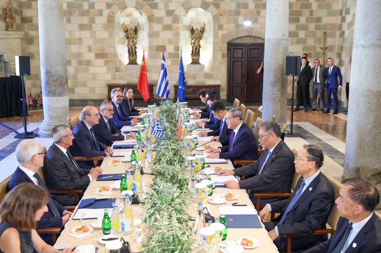 當(dāng)?shù)貢r(shí)間7月4日下午,國(guó)務(wù)院總理李強(qiáng)在希臘羅德島會(huì)見(jiàn)希臘副總理哈齊達(dá)基斯。