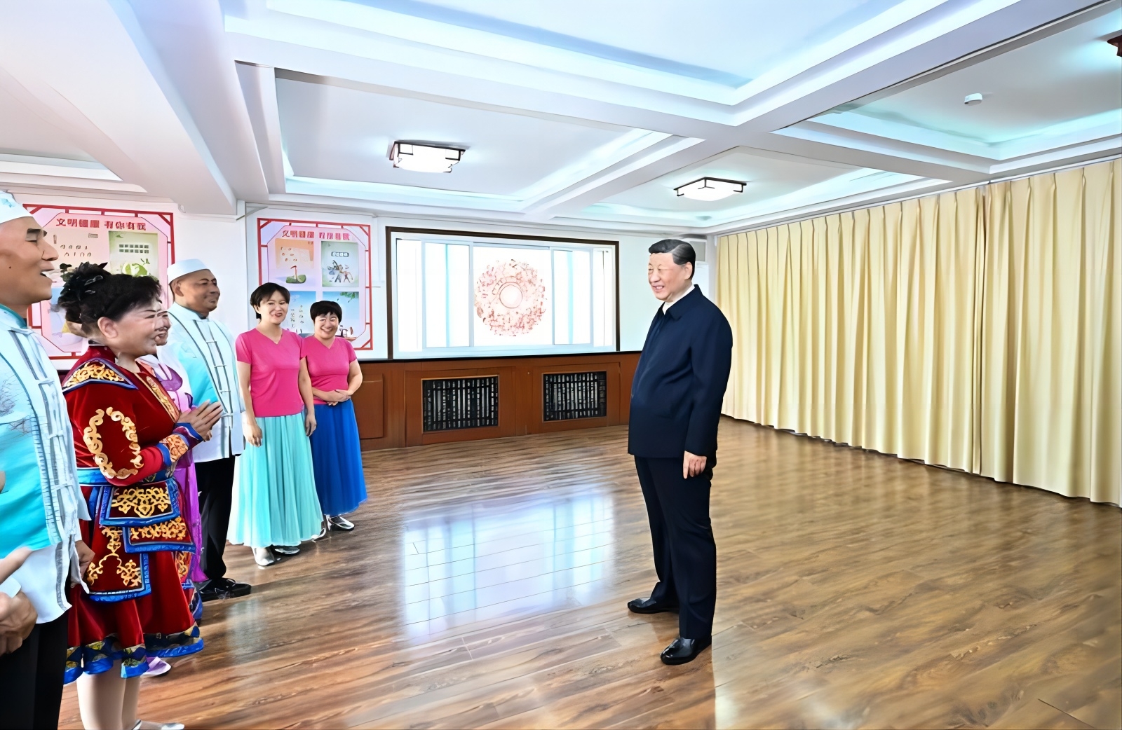 習(xí)近平來到社區(qū)居民趙守成家中,同一家人圍坐在一起拉家常,了解他們的就業(yè)、收入、醫(yī)保報(bào)銷、孩子上學(xué)等情況,為他們的幸福生活點(diǎn)贊,鼓勵(lì)孩子德智體美勞全面發(fā)展。趙守成告訴總書記,當(dāng)?shù)攸h委和政府十分關(guān)心社區(qū)建設(shè),特別是在改造老舊小區(qū)、豐富居民文體生活等方面做了很多實(shí)事,各族群眾在社區(qū)里和睦相處,生活過得很舒心。習(xí)近平強(qiáng)調(diào),我們黨是全心全意為人民服務(wù)的黨,各族群眾、家家戶戶都是我的牽掛。希望你們把家庭建設(shè)搞得更好,讓日子越過越紅火。
