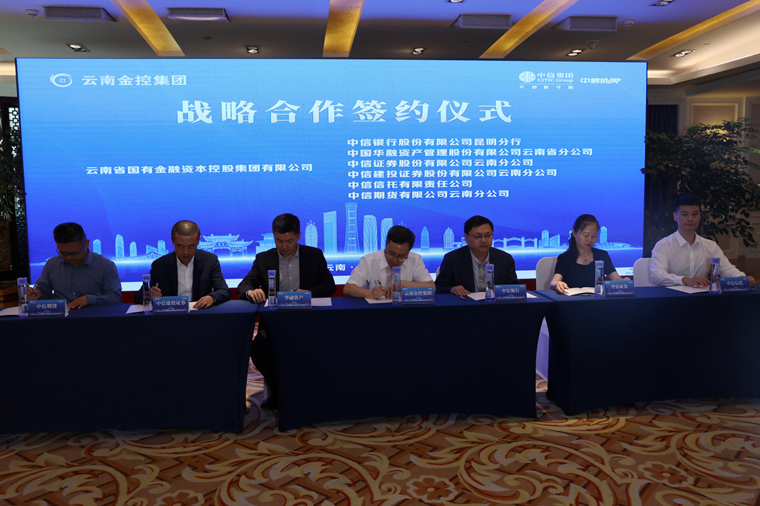 9月5日,集團(tuán)總裁葉智勇率隊(duì)與中信集團(tuán)協(xié)同委員會(huì)云南區(qū)域分會(huì)成員單位就發(fā)揮中信集團(tuán)協(xié)同優(yōu)勢(shì)、進(jìn)一步深化各領(lǐng)域全面合作舉行座談,并與中信集團(tuán)在滇金融聯(lián)合體6家單位(中信銀行、中信證券、華融資產(chǎn)、中信建投、中信信托、中信期貨)簽訂戰(zhàn)略合作協(xié)議。中信集團(tuán)業(yè)務(wù)協(xié)同部副總經(jīng)理任霞見證簽約。