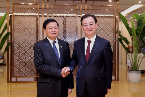 9月4日,王寧在西雙版納州景洪市會(huì)見(jiàn)老撾人民革命黨中央總書(shū)記、國(guó)家主席通倫。