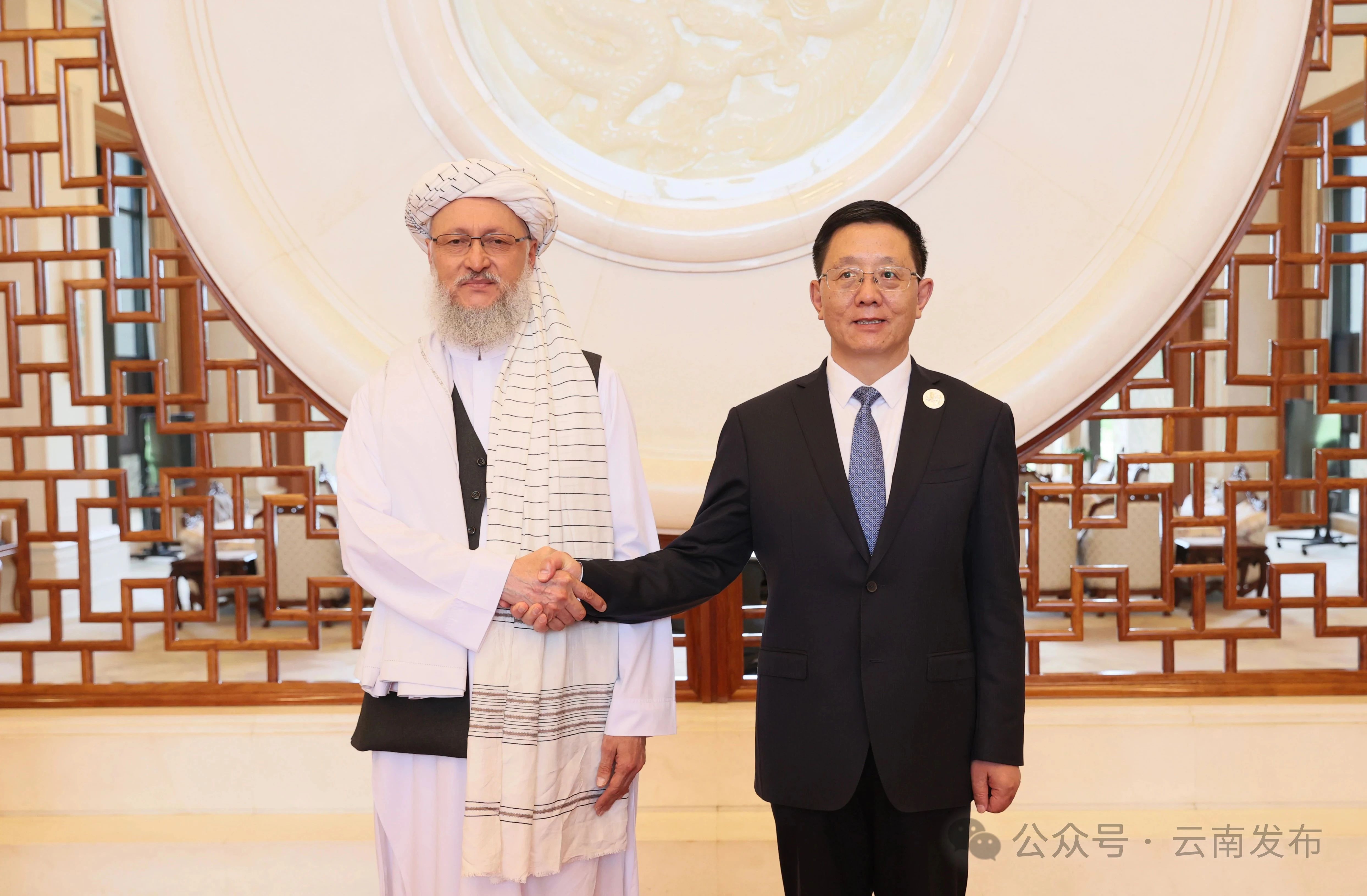 6月19日,王予波在昆明會見阿富汗臨時政府代理副總理阿卜杜·薩拉姆·哈納菲一行。