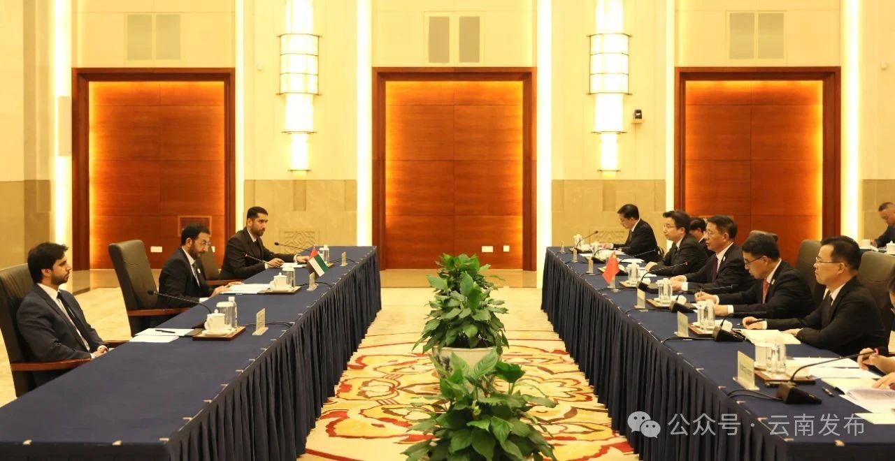 6月19日,王予波在昆明會(huì)見(jiàn)阿聯(lián)酋經(jīng)濟(jì)部次長(zhǎng)阿卜杜拉·薩利赫一行。