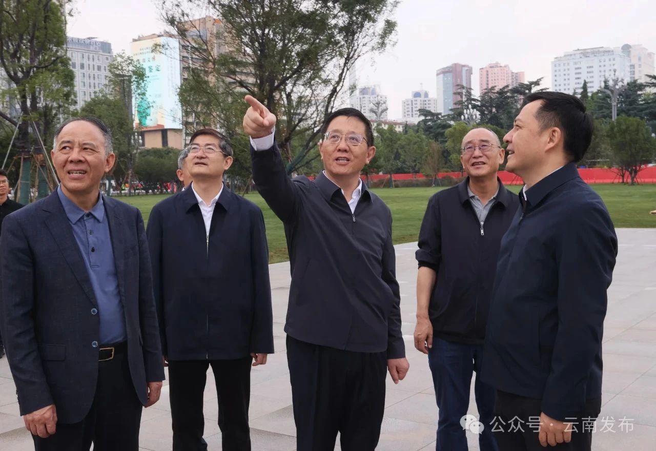 王予波在昆明市東風廣場察看恢復工程效果及周邊環(huán)境風貌。