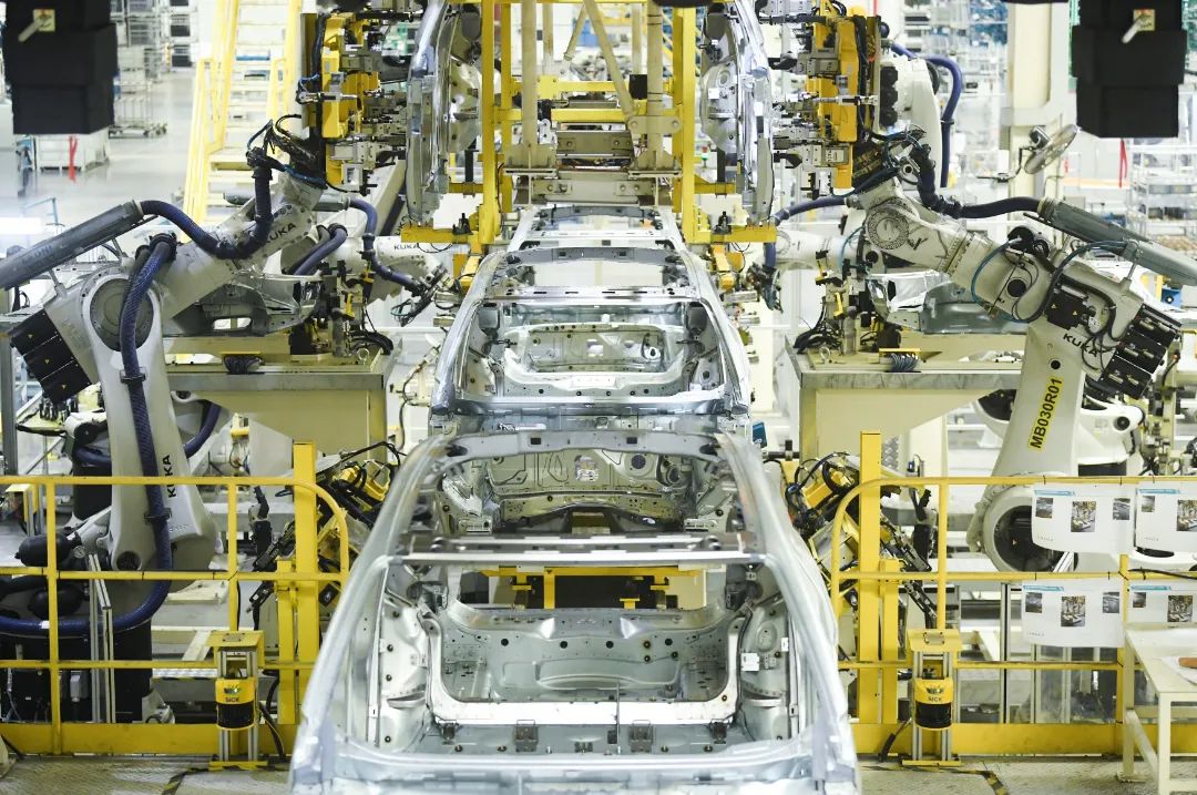 實體經(jīng)濟是金融的根基,金融是實體經(jīng)濟的血脈。近年來,浙江余姚市通過加大科技金融支持、推進創(chuàng)新平臺建設(shè)等政策,不斷壯大優(yōu)勢產(chǎn)業(yè)集群,推進制造業(yè)向高端化、智能化、綠色化發(fā)展。圖為2023年4月11日,在一家汽車企業(yè)的余姚工廠焊裝車間,智能機器人正在作業(yè)。新華社記者 翁忻旸/攝