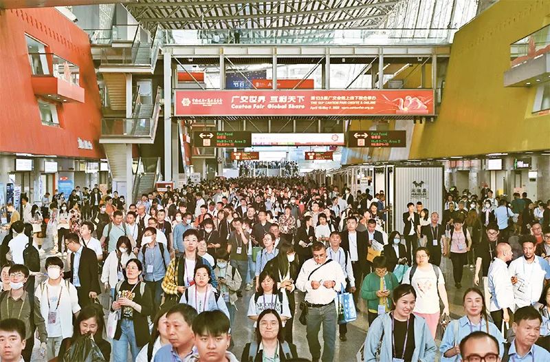 第133屆中國進出口商品交易會(廣交會)線下展于2023年4月15日至5月5日分3期舉辦,同時線上平臺全年常態(tài)化運營。本屆廣交會展覽面積、參展企業(yè)數(shù)量均創(chuàng)歷史新高,吸引220多個國家和地區(qū)的數(shù)十萬采購商報名參會。圖為4月26日拍攝的廣交會現(xiàn)場。 中新社記者 陳楚紅/攝