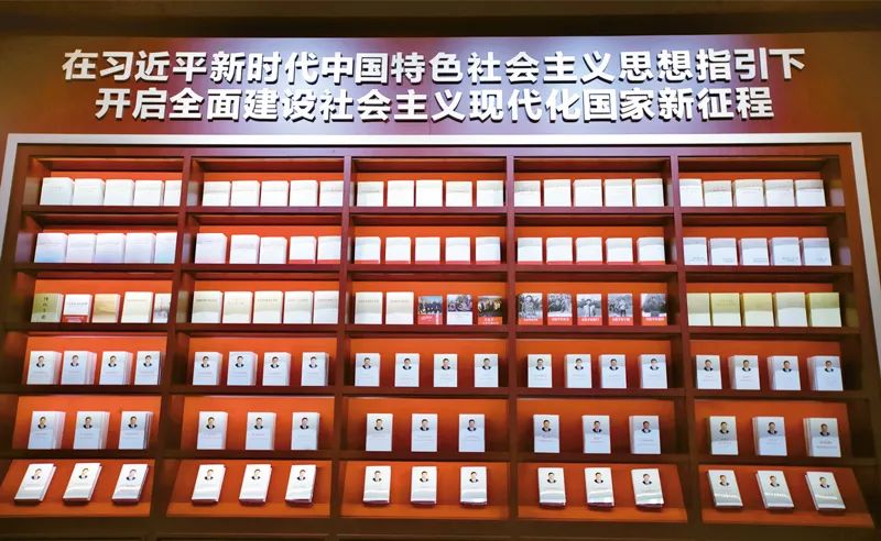 圖為中國共產(chǎn)黨歷史展覽館展出的習(xí)近平總書記的部分重要著作以及學(xué)習(xí)闡釋習(xí)近平新時(shí)代中國特色社會(huì)主義思想的部分重點(diǎn)圖書。劉新武/攝