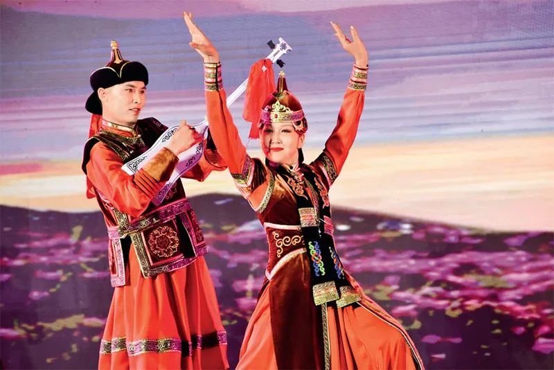 《瑪納斯》、《格薩爾》、《江格爾》三大民族英雄史詩(shī)是被納入我國(guó)第一批國(guó)家級(jí)非物質(zhì)文化遺產(chǎn)名錄的文化瑰寶。2023年7月13日晚,在新疆克孜勒蘇柯?tīng)柨俗巫灾沃菖e行的第九屆瑪納斯國(guó)際文化旅游節(jié)上,三大史詩(shī)同臺(tái)會(huì)演,吸引眾多觀(guān)眾前來(lái)觀(guān)看。圖為新疆博爾塔拉蒙古自治州歌舞團(tuán)演員在表演《江格爾》。 新華社記者 張瑜/攝