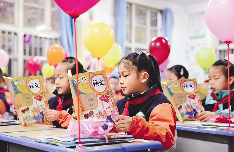 近年來,各地加快推廣普及國家通用語言文字,全面推行使用國家統(tǒng)編教材。圖為2025年2月17日,在貴州省黔東南苗族侗族自治州從江縣城關(guān)第三小學(xué),學(xué)生們正在閱讀剛領(lǐng)到的新課本。?視覺中國 石宏輝/攝