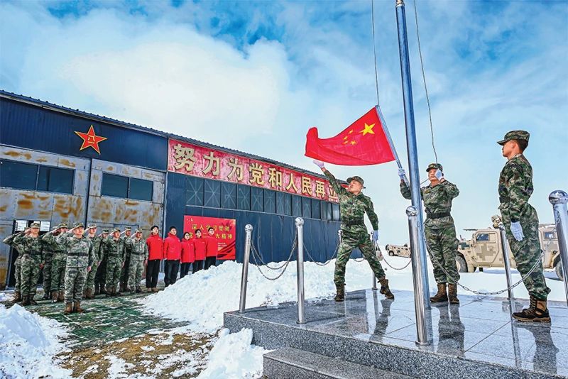 思政課不僅應(yīng)該在課堂上講,也應(yīng)該在社會(huì)生活中來(lái)講。圖為2025年4月29日,中國(guó)人民大學(xué)師生赴西藏自治區(qū)日喀則市開(kāi)展“大國(guó)邊疆”思政調(diào)研,走進(jìn)“高原戍邊模范營(yíng)”哨所,與官兵共同舉行升旗儀式。 北京市委教育工委供圖