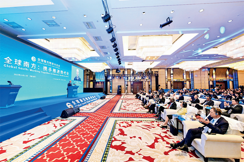 2023年11月2日,以“全球南方:攜手推進(jìn)現(xiàn)代化”為主題的全球南方智庫對話會在福建省廈門市開幕。來自巴西、俄羅斯、印度、南非等50多個(gè)新興市場國家和發(fā)展中國家的智庫學(xué)者、政黨代表、企業(yè)界人士等300余人與會。圖為與會代表出席全球南方智庫對話會開幕式。中聯(lián)部供圖