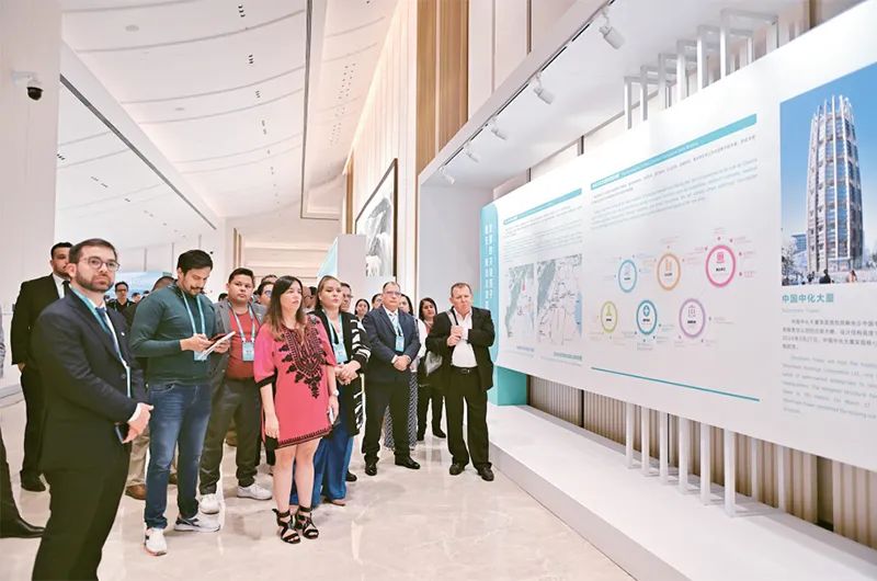 2024年6月27日,由中共中央對外聯(lián)絡(luò)部同中共河北省委和雄安新區(qū)黨工委共同舉辦的“中國共產(chǎn)黨的故事——習(xí)近平新時(shí)代中國特色社會主義思想在雄安的實(shí)踐”專題宣介會在雄安新區(qū)舉行,來自近40個(gè)國家的230余名政黨領(lǐng)導(dǎo)人或代表現(xiàn)場出席會議。圖為當(dāng)日與會嘉賓在雄安會展中心內(nèi)參觀。新華社記者 牟宇/攝