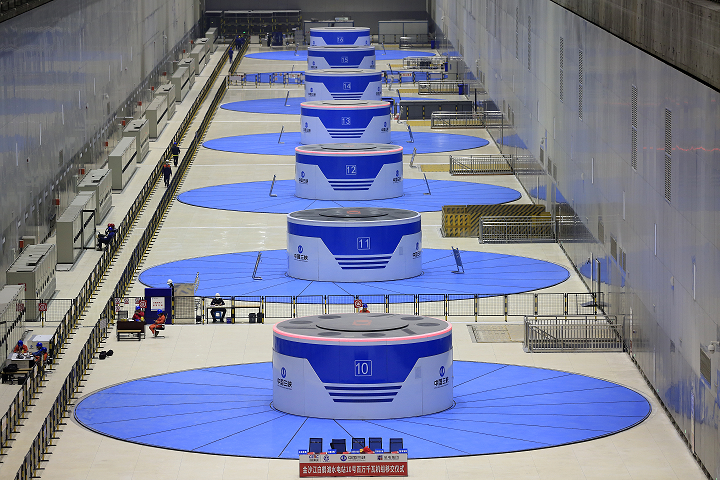 2022年11月5日18時(shí)55分,白鶴灘水電站10號(hào)機(jī)組順利通過72小時(shí)試運(yùn)行,正式投入商業(yè)運(yùn)行。圖為白鶴灘水電站右岸地下廠房發(fā)電機(jī)組。新華社發(fā) 閆科任/攝