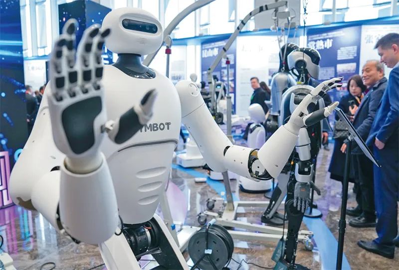 2025年蘇州市“人工智能+”創(chuàng)新發(fā)展推進(jìn)大會(huì)暨人工智能賦能新型工業(yè)化深度行(蘇州站)活動(dòng)于2月14日舉行,本次活動(dòng)以“共啟AI+新質(zhì)賦未來”為主題,集中展示蘇州人工智能領(lǐng)域發(fā)展情況。圖為在活動(dòng)現(xiàn)場展示的人形機(jī)器人。?新華社記者 李博/攝