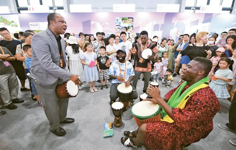 2023年中國國際服務貿(mào)易交易會上舉辦“一帶一路”共建國家特色文化展示活動,通過特色文藝演出、文化推介、護照打卡等一系列活動,展現(xiàn)共建國家文化風采。圖為展示活動上,加納共和國駐華大使館展區(qū)的工作人員在現(xiàn)場即興表演。 新華社記者 鞠煥宗/攝