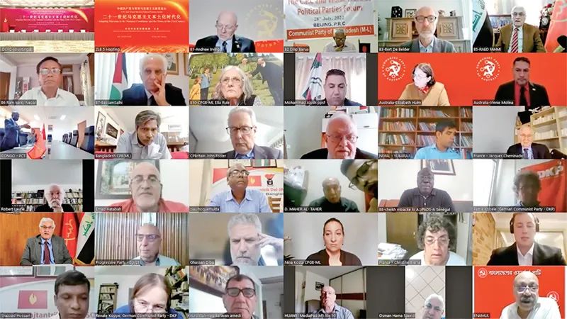 2022年7月28日,中國(guó)共產(chǎn)黨與世界馬克思主義政黨論壇舉行。習(xí)近平總書(shū)記在賀信中強(qiáng)調(diào),中國(guó)共產(chǎn)黨愿同各國(guó)馬克思主義政黨加強(qiáng)交流對(duì)話,立足本國(guó)國(guó)情,把準(zhǔn)時(shí)代脈搏,不斷豐富和發(fā)展馬克思主義,在攜手推動(dòng)構(gòu)建人類命運(yùn)共同體的進(jìn)程中讓馬克思主義展現(xiàn)出更強(qiáng)大的真理力量。圖為外國(guó)政黨代表線上參加論壇。 中共中央對(duì)外聯(lián)絡(luò)部供圖