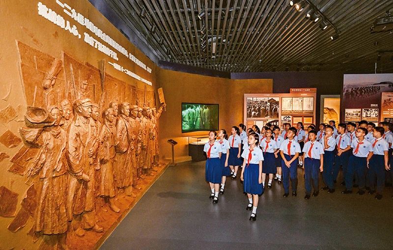 弘揚(yáng)愛國(guó)主義精神,必須把愛國(guó)主義教育作為永恒主題。2025年7月7日上午,紀(jì)念全民族抗戰(zhàn)爆發(fā)88周年儀式暨《為了民族解放與世界和平》主題展覽開幕式在中國(guó)人民抗日戰(zhàn)爭(zhēng)紀(jì)念館舉行。圖為當(dāng)日少先隊(duì)員參觀主題展覽。 新華社記者 陳曄華/攝