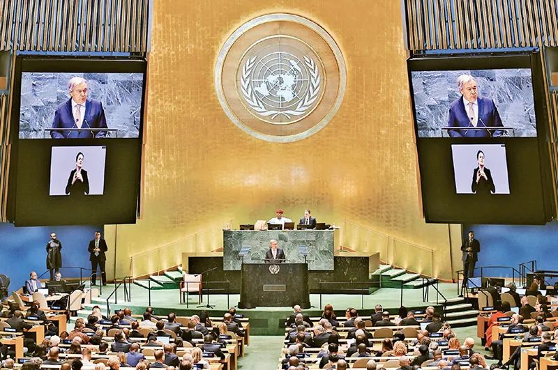 2024年9月22日至23日,聯(lián)合國未來峰會在紐約聯(lián)合國總部召開。峰會通過《未來契約》及其附件,以進一步發(fā)展多邊主義框架,適應未來發(fā)展,努力建設一個安全、和平、公正、平等、包容、可持續(xù)和繁榮的世界。圖為9月22日拍攝的峰會現(xiàn)場。?新華社記者 李睿/攝