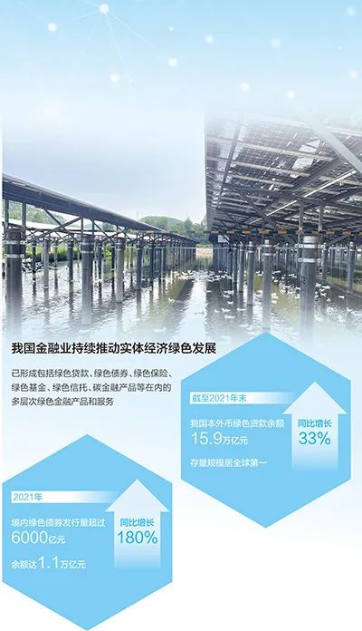 黨的二十大報告提出,完善支持綠色發(fā)展的財稅、金融、投資、價格政策和標準體系,發(fā)展綠色低碳產業(yè)。近年來,我國金融業(yè)持續(xù)推動實體經濟綠色發(fā)展,到去年底,本外幣綠色貸款余額達15.9萬億元,存量規(guī)模居全球第一。
