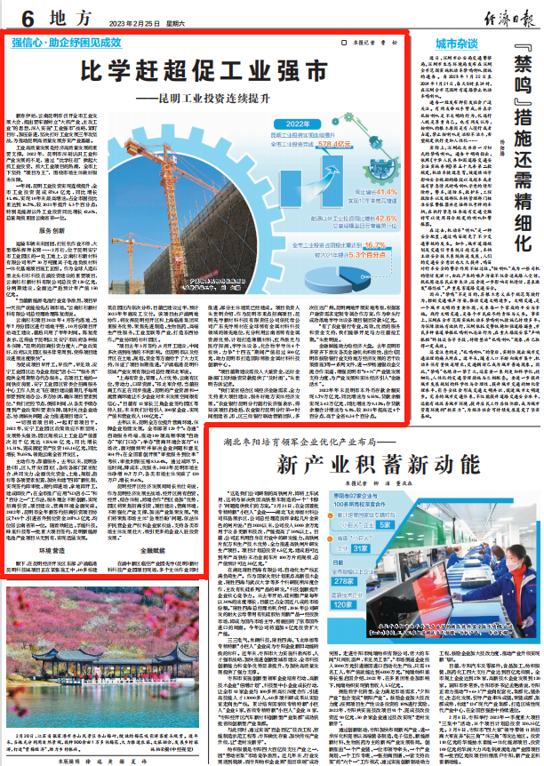 比學(xué)趕超促工業(yè)強(qiáng)市!《經(jīng)濟(jì)日?qǐng)?bào)》報(bào)道昆明工業(yè)投資連續(xù)提升