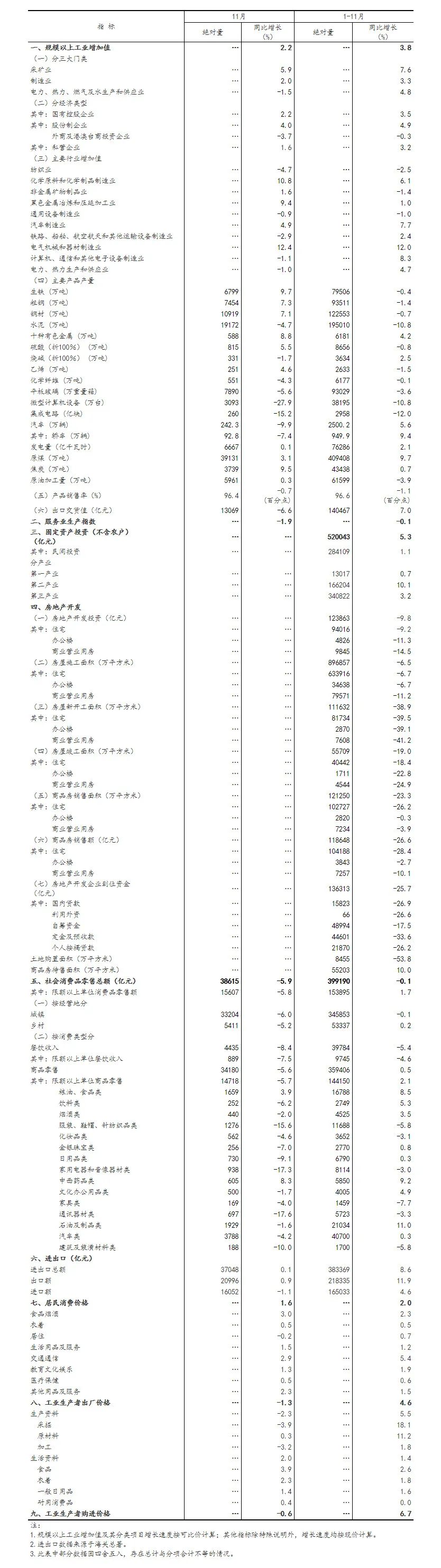 ?(1)規(guī)模以上工業(yè)增加值及其分類項(xiàng)目增長(zhǎng)速度按可比價(jià)計(jì)算,為實(shí)際增長(zhǎng)速度;其他指標(biāo)除特殊說明外,均按現(xiàn)價(jià)計(jì)算,為名義增長(zhǎng)速度。