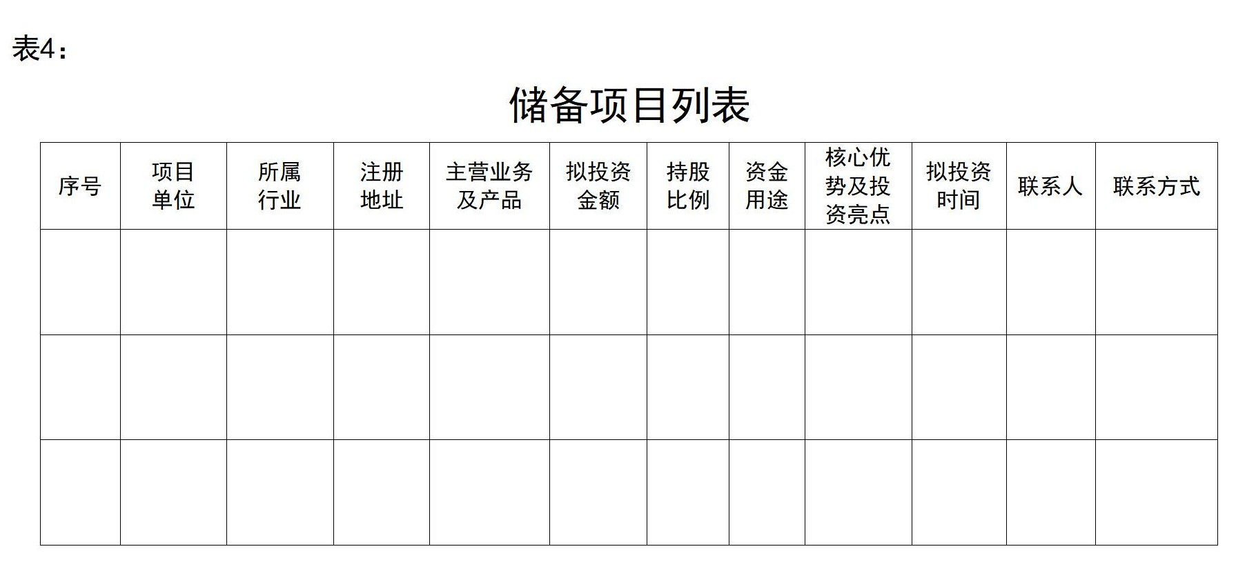 ? ? ??(二)項目儲備情況(列出全部儲備項目基本情況,表4)